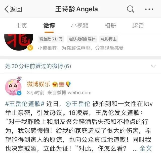 眼看着舆论发酵,王岳伦发微博道歉,表示是酒后失态。