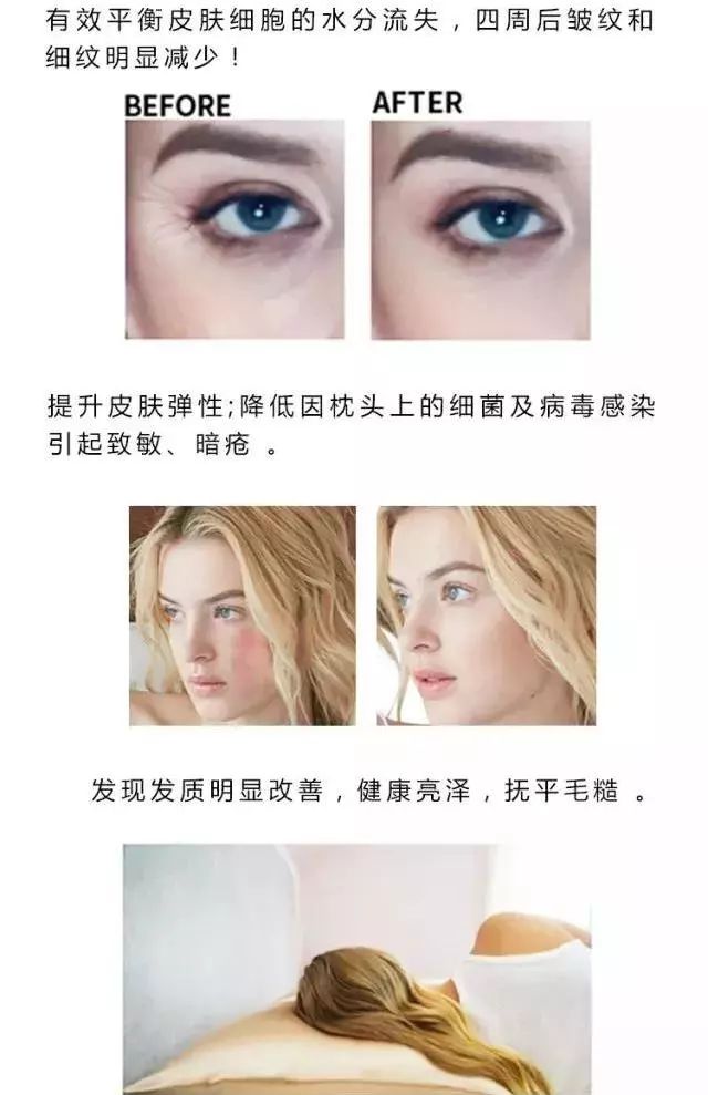 很多人都不知道,当我们晚上睡眠的时候,细胞更生较白天快8倍,而如果我们所用的枕头套是棉质、丝质或绸缎时,它们会加快皮肤水分的流失,导致睡纹甚至皱纹的出现。