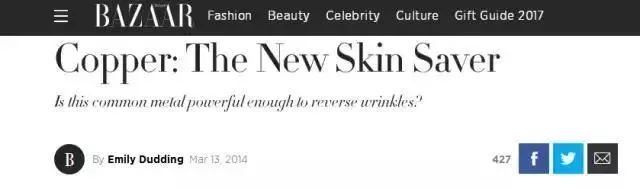 早在2014年,全球最具权威的女性时尚杂志之一《时尚芭莎》就采访了纽约Mount Sinai医院皮肤科、化妆品和临床医学研究主任 Joshua Zeichner医生,证实了铜元素对皮肤的保养作用。