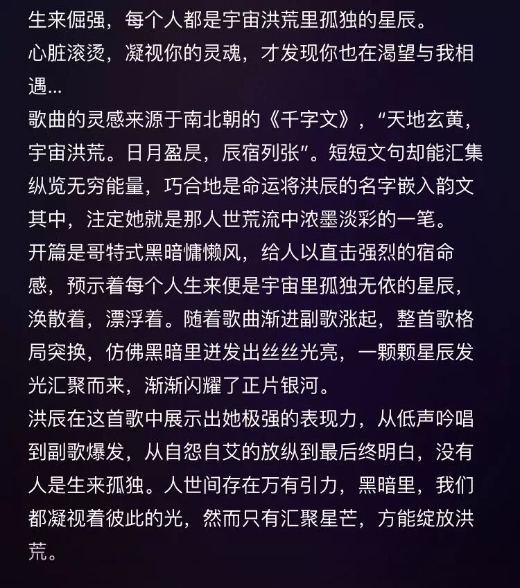 合于洪流是一种天性,选择荒流是一种傲性。她是荒流中的鱼,游荡在炽热滚烫的沙海,没有人知道她要去什么地方,没有人会相信她所能到的地方。她行走在世界的边缘,或许是白夜的梦,潘多拉的魔盒,又或许是宿命。她从未恐惧孤独,因为孤独本就是灵魂的心脏。