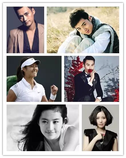 娱乐界:韩箐清、徐小凤、王凯、任贤齐、李玟、徐帆、刘亦菲、许晴、袁弘、余少群、邵兵、李宗翰、朱桦、田原、彭坦、李琼、贾一平、唐一菲、刘雨欣、程莉莎、范立欣、姚贝娜、缪杰、吴婷等;
