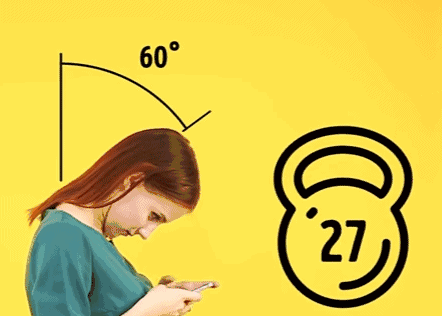 给大家提个醒,研究发现因为地球引力的缘故,当头部弯曲60度时,颈椎承受的压力会达到45斤重,这可相当于一个7岁儿童的体重!