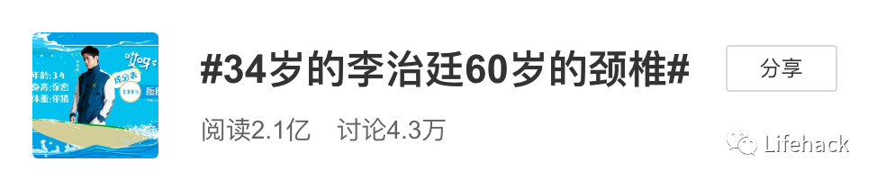 很快,#34岁的李治廷60岁的颈椎#就登上了今天的热搜榜,引发网友们热烈讨论....