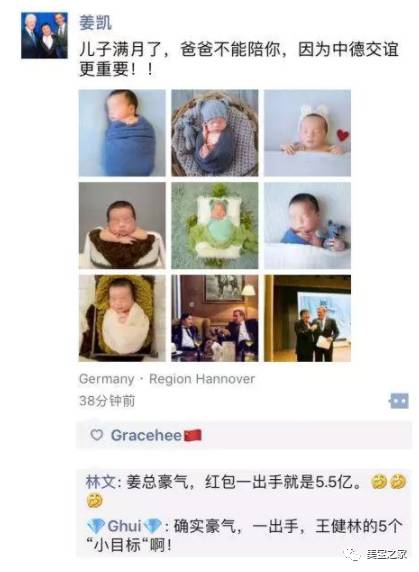 并被好友爆出姜凯为犒劳在美国生孩子的妻子,包了个大手笔红包给爱妻,5.5个亿——真是贫穷限制了我们的想象。