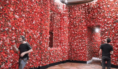 100多个花艺师,将100万朵鲜花安插在5个颜色各异的房间。▼