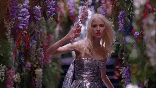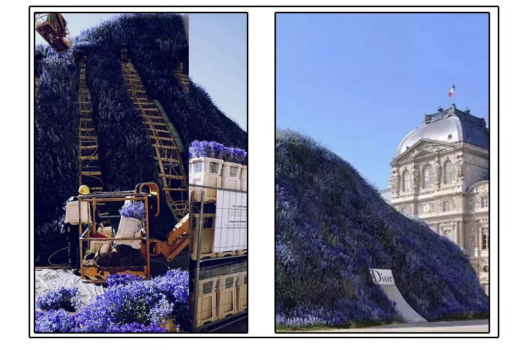 2016年DIOR春夏系列-卢浮宫前被插满了40万株蓝紫色的飞燕草,也是Raf Siomons的谢幕秀,飞燕草是Raf Siomons最喜欢的花。▼