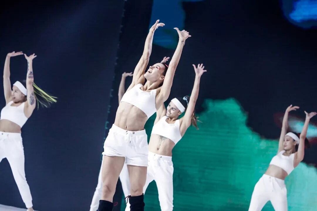 全白运动服装是现在大火的内衣黑科技her own words,加上teenmix鞋所以模特们才能这么毫无束缚跳着Funk Jazz。▼