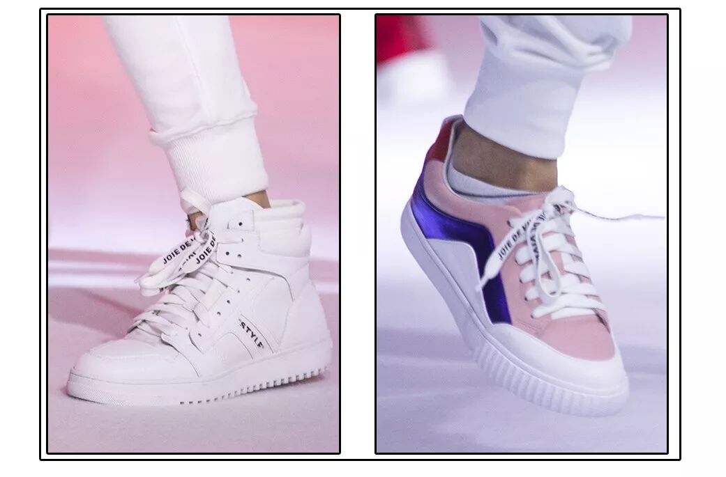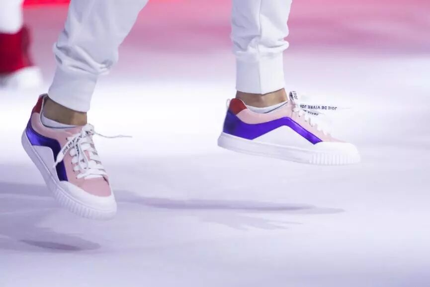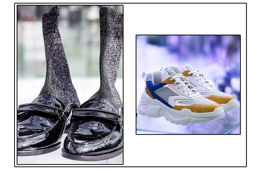 有的更是将灵感天空流动色彩融入鞋履设计,天光的颜色总是高深莫测,所以大胆的将撞色和不同面料拼接一体。▼
