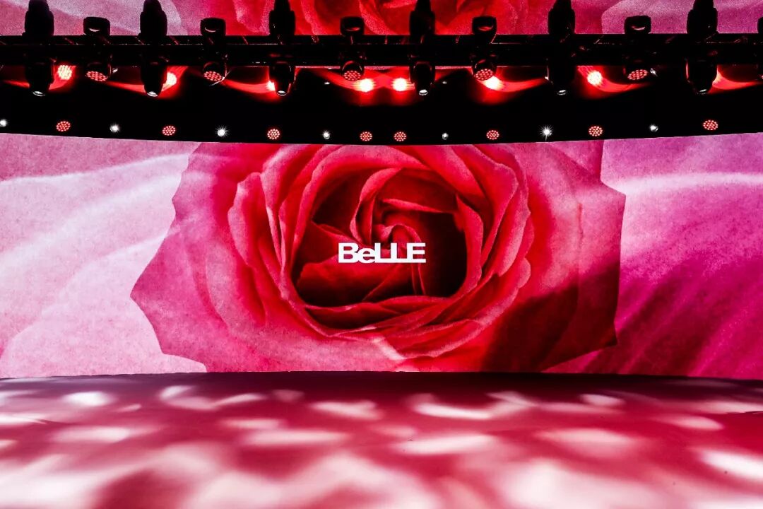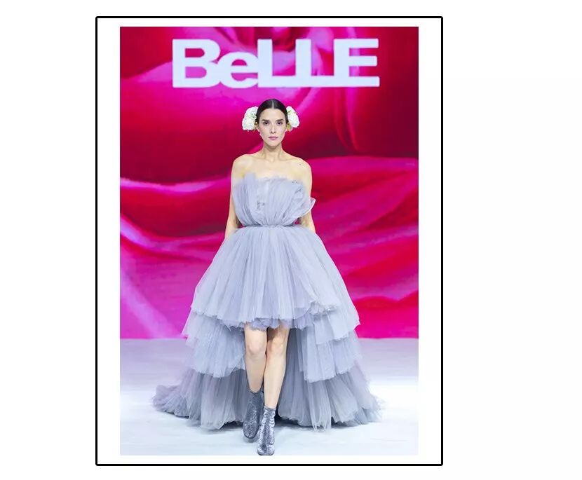 直到最后一个模特出来,满屏的花朵绽放,BeLLE的秀就像高定里的仙女一样,穿着灰色调的拖地长裙,踩着银灰色的丝绵面料的靴子缓缓走出来。▼