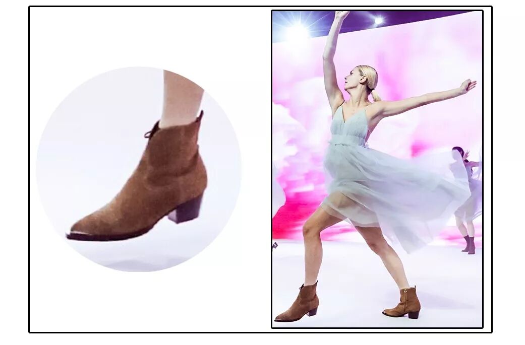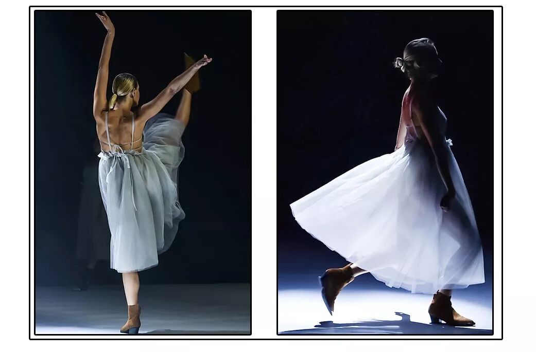 舞者穿着同样的衣服,但脚上每双靴子都不同,就像独立帅气的仙女,冬天硬朗的中筒靴中和了纱裙的柔美。▼