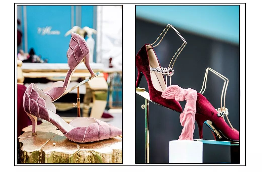 为了透露法式古堡生活里“For better moments”的感觉,鞋子也是洛可可时期的宫廷款,绑着丝带和水钻扣。▼