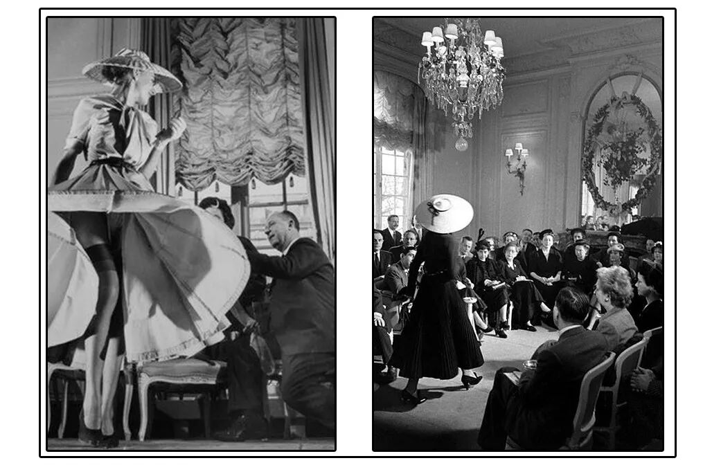 时装秀最早是二战后时Christian Dior的工作室以穿衣走秀的方式出场,当时只是最简单的模特穿衣,为数不多的媒体和嘉宾拿着纸和笔勾选心仪的款式。▼