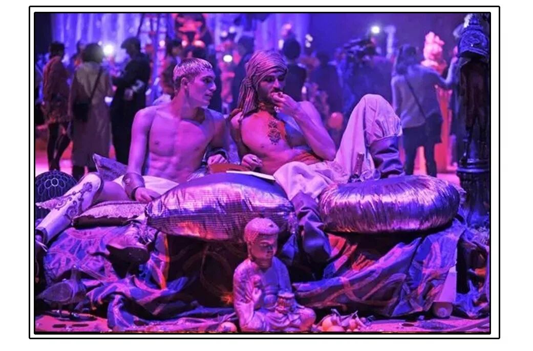 模特们的妆容和服装也及其妖艳诡异,体现了人生的各种物欲,贪嗔痴。▼