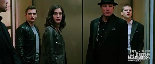 烧脑时刻,观众最爱的黑色幽默当然不可少。预告片中“魔盗小鲜肉”戴夫·弗兰科在黑暗中将纸牌飞出,“读心侠盗”伍迪·哈里森得意洋洋的要给他露一手,却遭到“小鲜肉”不留情面的调侃,“您真行虽然一年来毫无进步但是能保持乐观也是好的。”一段犀利直白的黑色幽默让人忍俊不禁。紧接着背景音乐反转,将画面带入一场万人空巷的盛大表演现场。再度回归的“魔盗团”以华丽绝妙的魔术技能征服全场,而在看客的兴奋声中,“魔术揭秘者”摩根·弗里曼却在暗处阴沉抛出“四骑士将会自食其果”的警告,热血沸腾的场面瞬间如同掉入冰窖,战火一触即发。