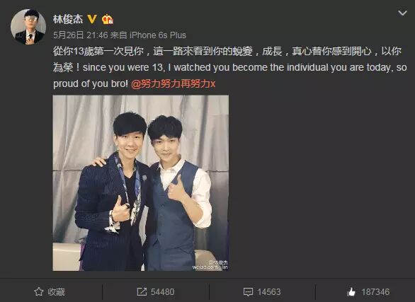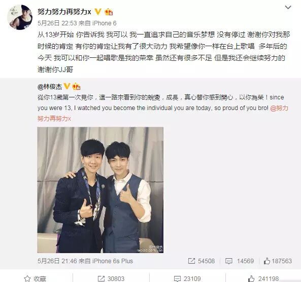 点击上方“爱奇艺爱上海”订阅哦!在昨晚举行的某公益演出上,张艺兴与偶像林俊杰同台献唱,两人不仅大秀钢琴合奏,还合作了多首歌曲,引得歌迷粉丝激动不已~这个画面是不是很有爱?其实,这并不是两人第一次认识哦!早在11年前,13岁艺兴参加选秀时,JJ就作为导师对他进行了指导。(咳咳,看穿着与造型就觉得好久远的样子呢)小绵羊也说JJ一直是自己的偶像,时隔十一年的拥抱,真的很特别啊!小绵羊表示:“JJ哥是这个行业里第一个认可我的人,真的很感谢!”JJ更是在自己微博Po上两人最新合影,附文:从你13岁第一次见你,这一路来看到你的蜕变,成长,真心替你感到开心,以你为荣!当年的张艺兴还是一名小小少年,吉他上贴满了林俊杰的贴纸,可见这位粉丝的疯狂程度↓↓↓此次俩人同台对唱,献上了《翅膀》+《i believe i can fly》,只能说缘分这东西真是妙不可言啊一晃11年过去,JJ还是当年的JJ,只是多了一份成熟稳重的味道,而少年张艺兴已经成长为了一位优质偶像、优质歌手。也祝愿两人能够越来越好,带给大家更多更优秀的好作品~点击阅读原文搜索更多精彩资讯……