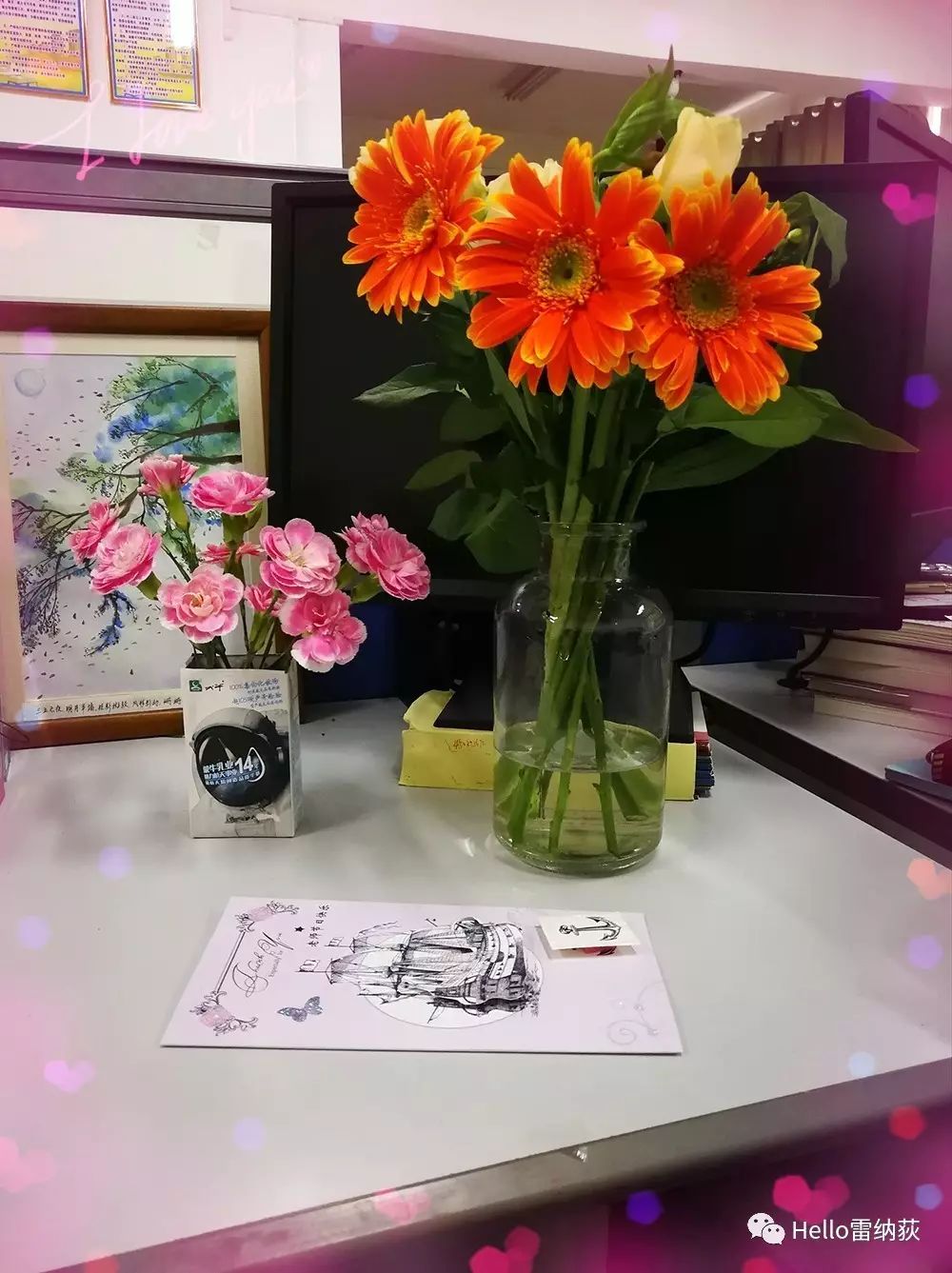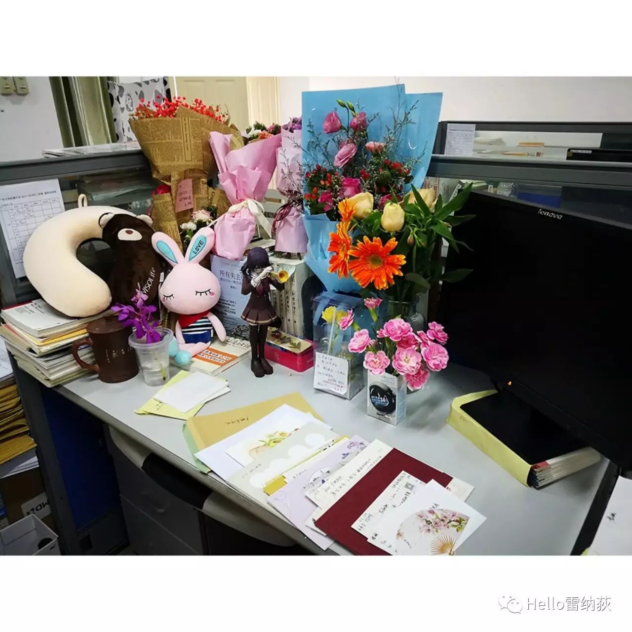 9月10日19:10 ,还在写着文章,卢老师接到了去上晚习的苏老师的电话,电话那头的她兴奋激动——你知道你办公桌现在是什么样子吗?你的桌子都堆满了礼物!不信,拍给你看看!于是,通过照片,我看到了自己的办公桌——