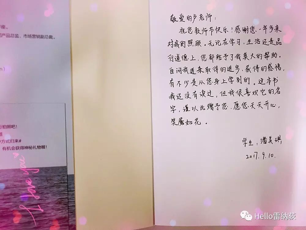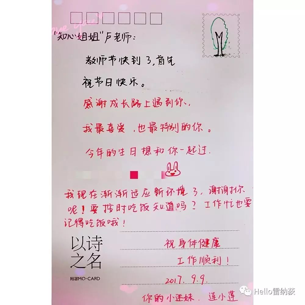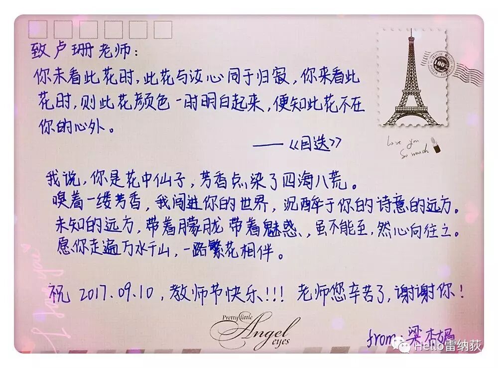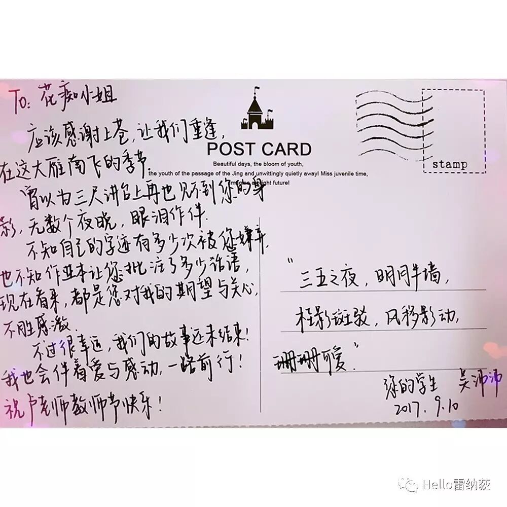 现将开学时和教师节那天大家送的卡片和信件的部分留言记录下来,文字很美,堪称作品,可与大家分享。男生送礼物一般都比较简单直接,因此更多的是女生的文字。在此一并谢过小伙伴们——