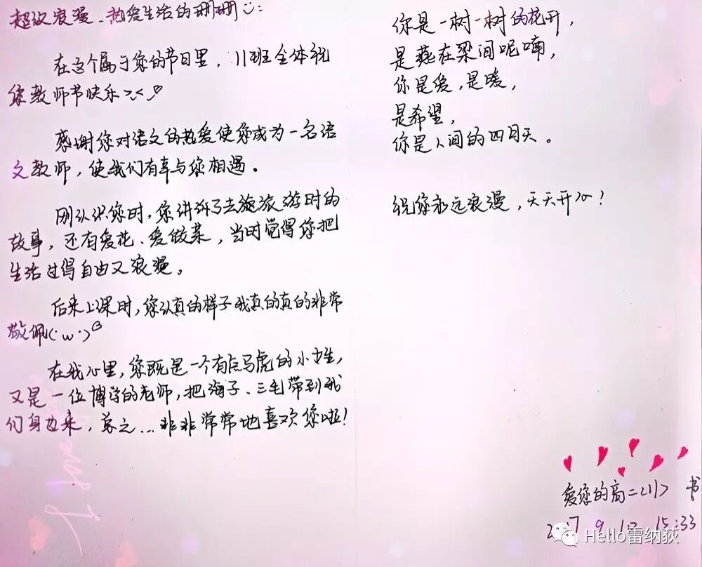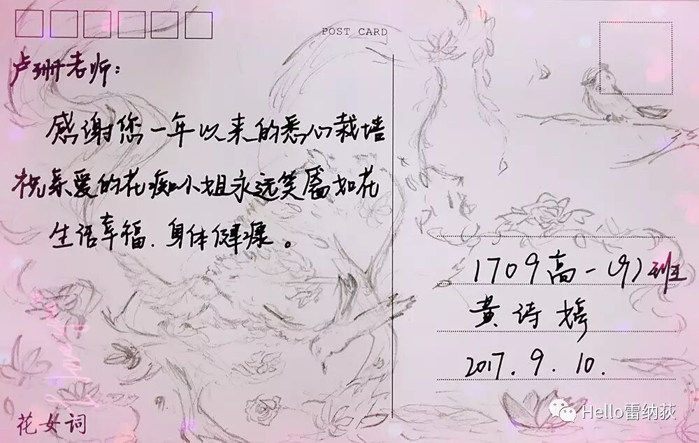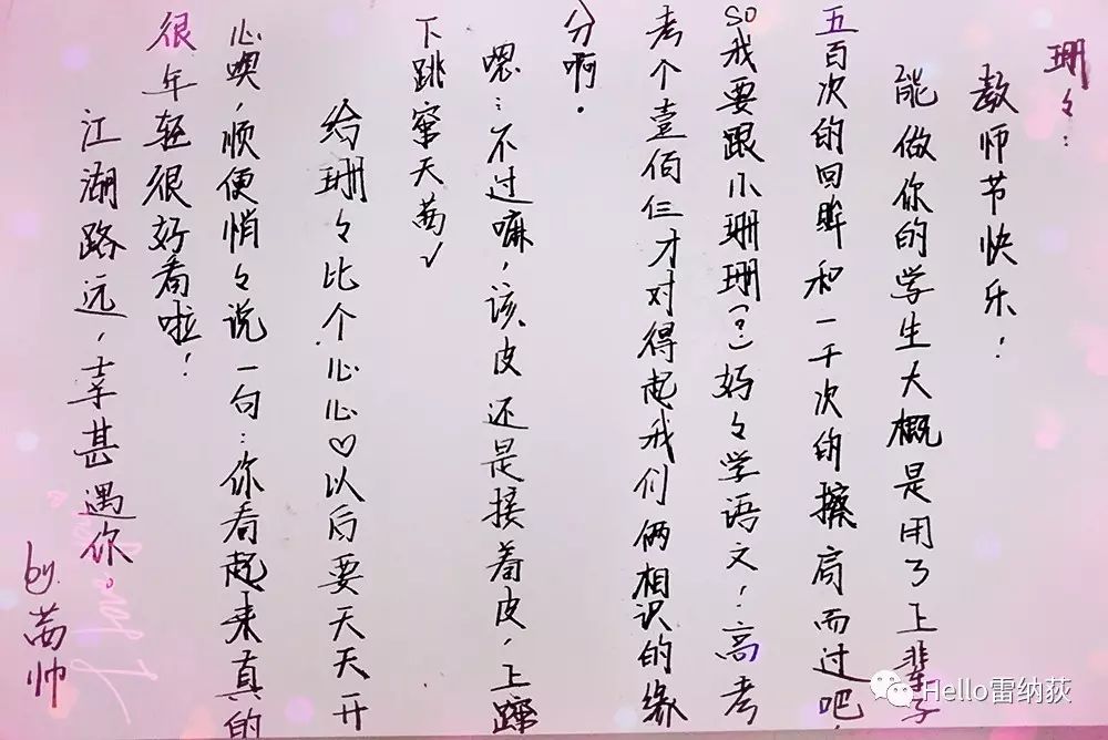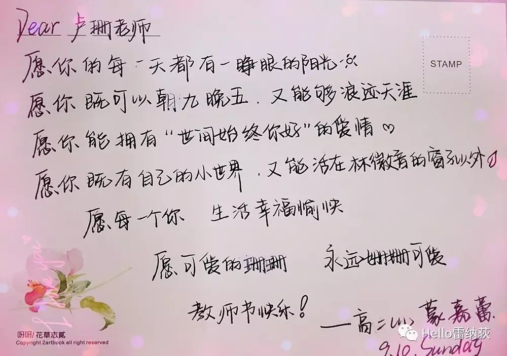 现将开学时和教师节那天大家送的卡片和信件的部分留言记录下来,文字很美,堪称作品,可与大家分享。男生送礼物一般都比较简单直接,因此更多的是女生的文字。在此一并谢过小伙伴们——