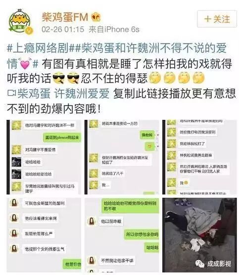 在此之前,许魏洲还和《上瘾》的编剧柴鸡蛋传出恋情。去年2月26日柴鸡蛋突然“手滑”,在微博上得意地宣称自己“睡了许魏洲”,并配了大量的微信截图和一段内容露骨的音频,随后秒删微博。柴鸡蛋称是账号被盗、有人恶意攻击。