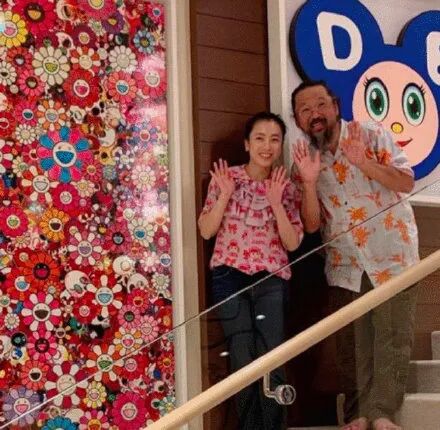香江第一富太甘比家里也有同样的村上隆的画,比向太更大,而且还请作者本人到家里游玩。