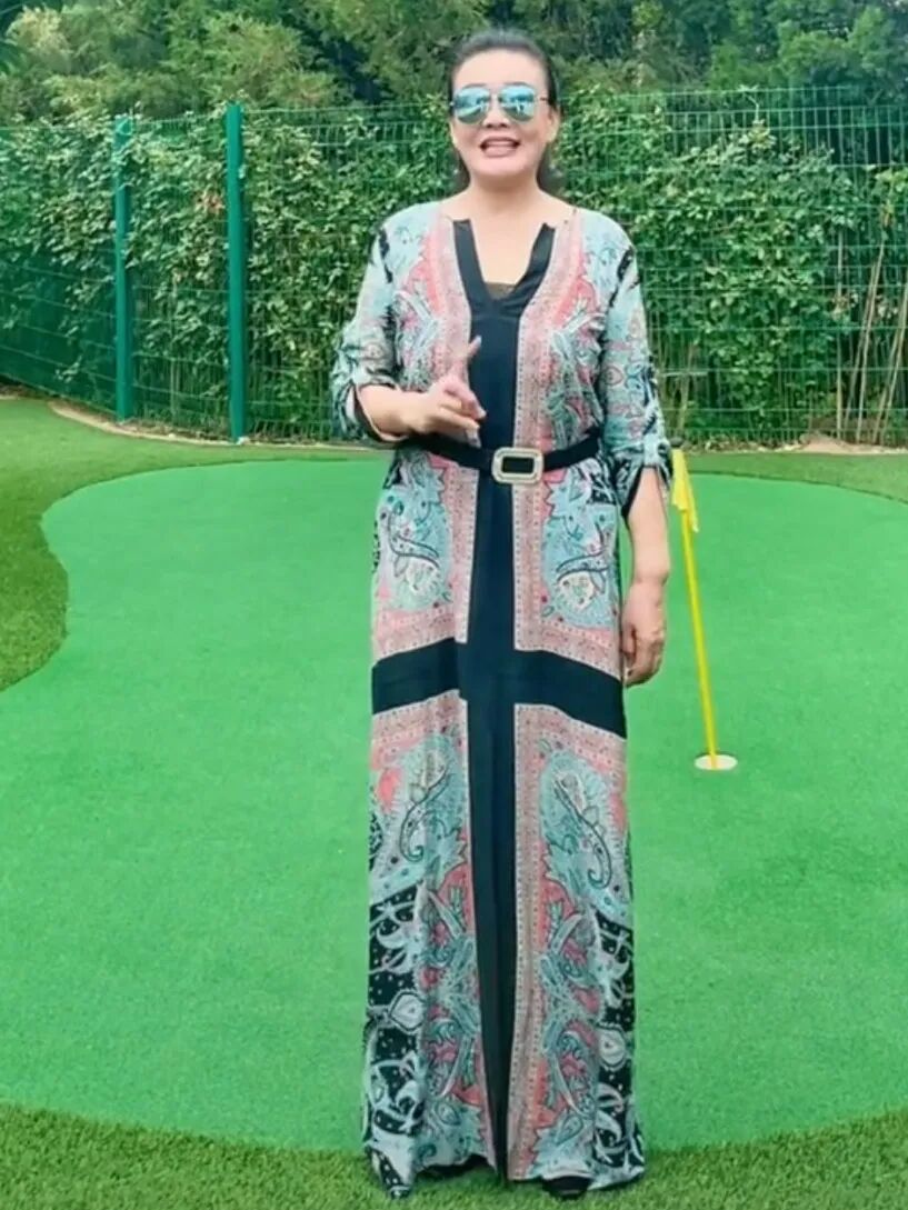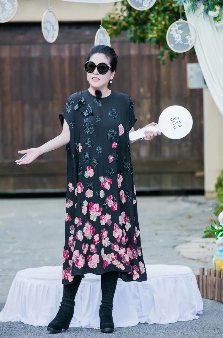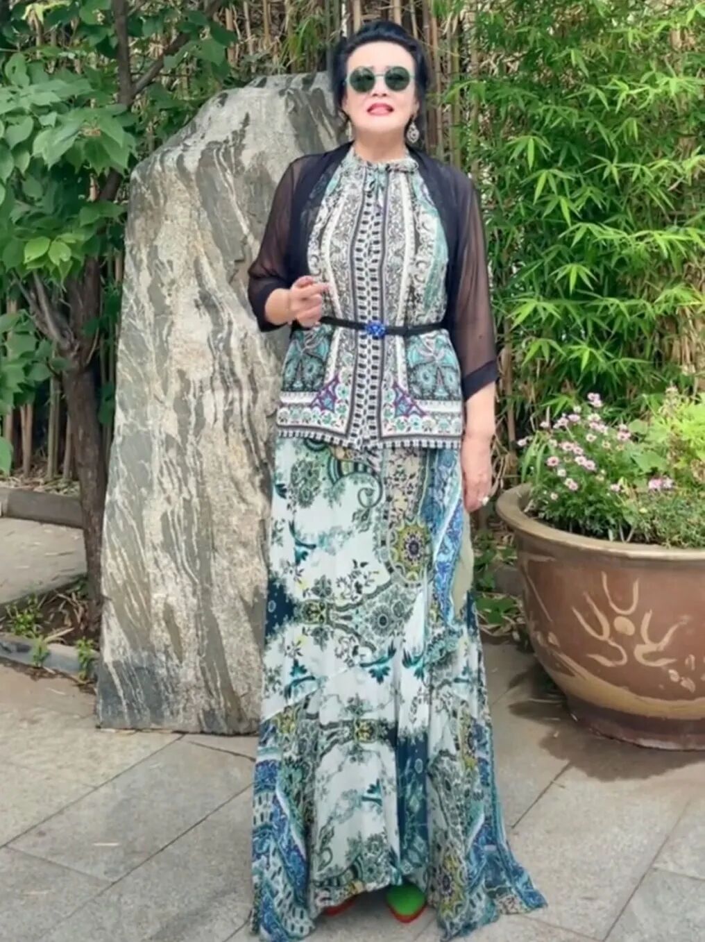 张兰嘛,毕竟是在抖音展示自己贵妇生活的人,所以常常以极其隆重的印花长裙出镜。