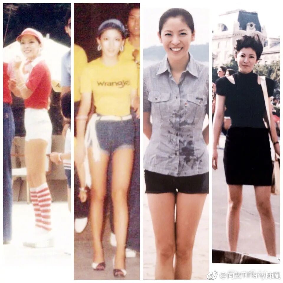 甚至有时候还会穿这种显腿长的黑色短裤,大秀美腿。能看出来,刘晓庆的身材保养得不错。
