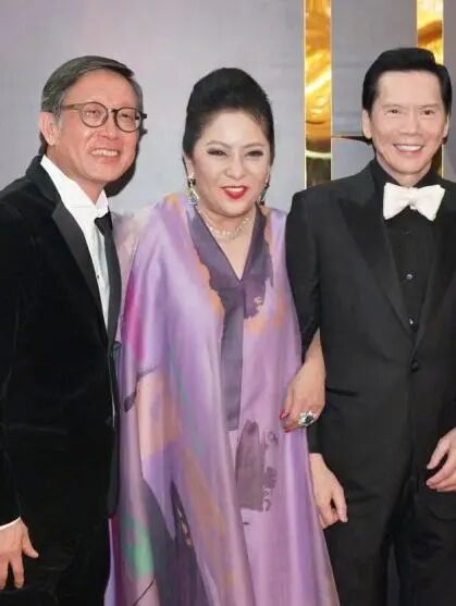 譬如这一套紫红连衣裙,在男士黑色西服的映衬下,向太多有分量感,郭蔼明虽然是大美女,但我的目光还是被向太给吸引了过去。