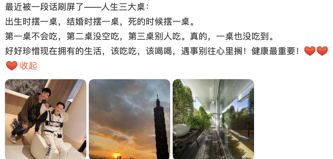 我去看了一圈,向太的微博里,她自己的照片并不是很多,不少都是之前上综艺的穿搭,私底下生活的很少。