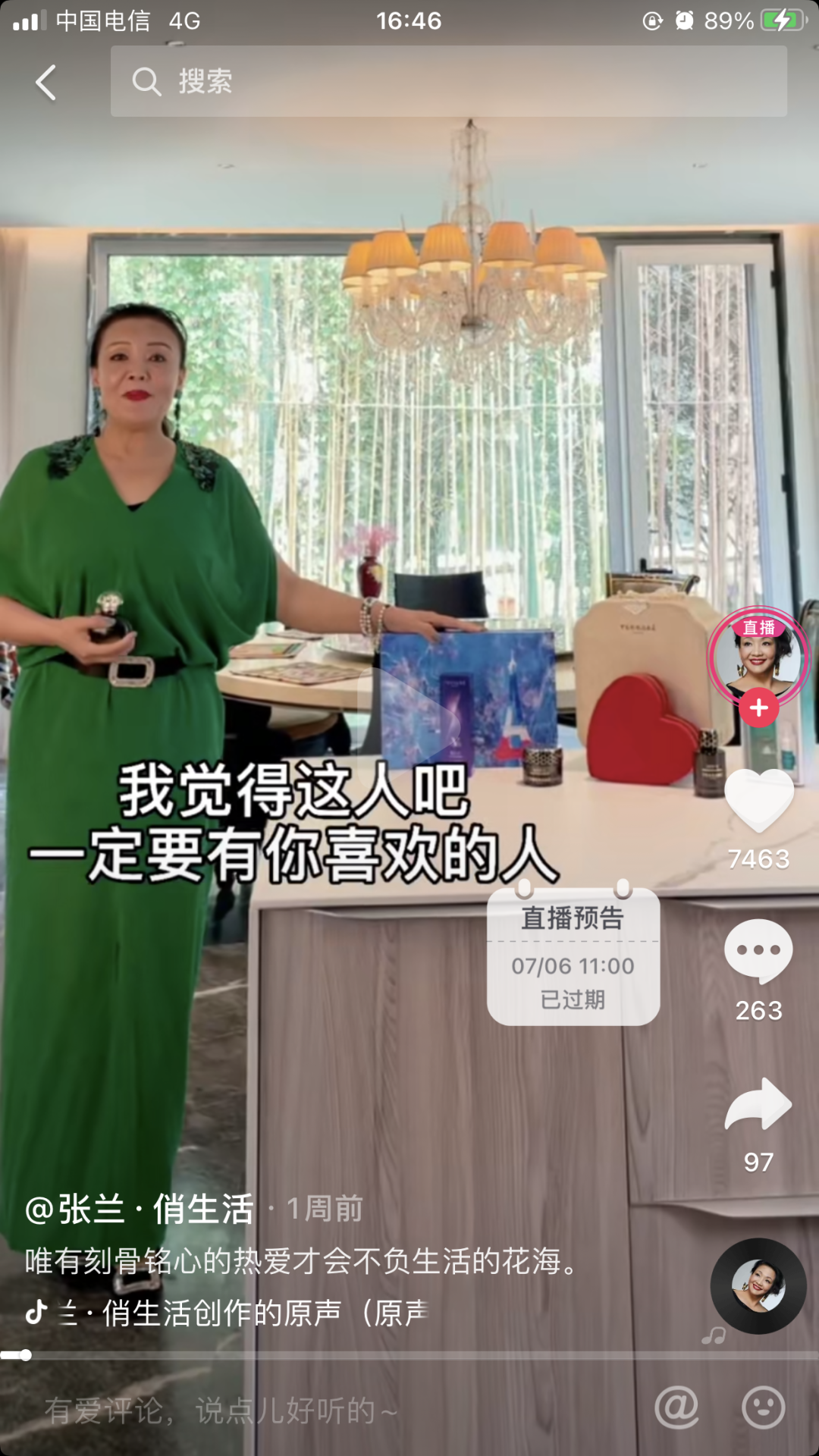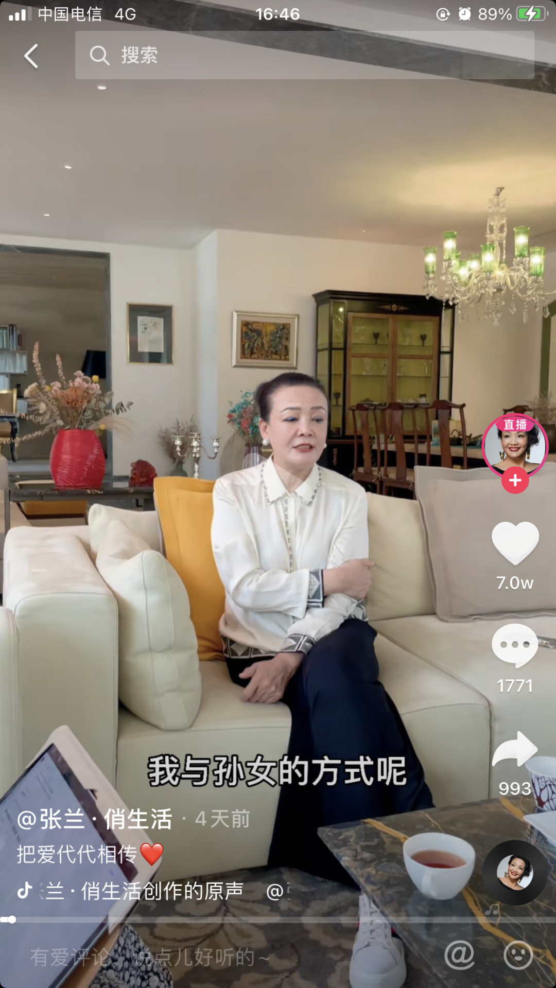 张兰的抖音则是声情并茂地讲解了自己对人生、婚姻的感悟。