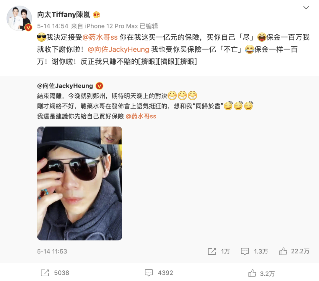 一方面是,微博是娱乐圈化的,向太的儿子儿媳都是娱乐圈人士,她和先生开影视公司,她自己还上综艺节目,也算是半个娱乐圈人。
