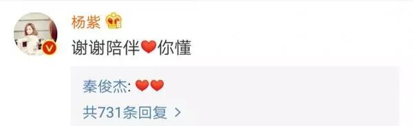 杨紫也在下面甜蜜回应:谢谢陪伴,你懂。