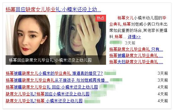 这则消息是几日前被台湾媒体踢爆。大概的意思是说小糯米就读的“Art Plus”幼儿园近期举行了毕业礼,而杨幂在这么重要的场合却没有出席,还有家长爆料称从未见过杨幂接送女儿上下学。