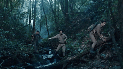 大家胆子肥的话还是自己看比较震撼。这个场面是从水底仰视,铁三角乘坐的竹排被水彘蜂围攻。