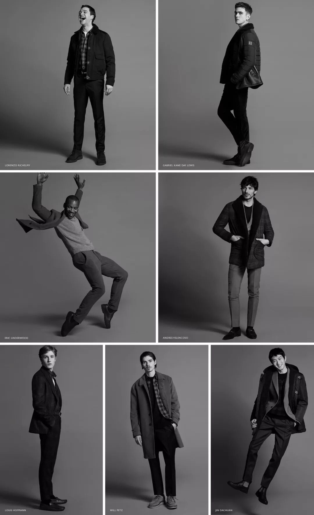 阵容不容小觑,可以说网罗了当下全球最热门的年轻人、一份顶级的名单——他们中包括了曾主演《时间规划局》(IN TIME)的美国青年演员Will Peltz,曾以《地雷区》(UNDER SANDET)荣获2015年第28届东京国际电影节主竞赛单元最佳男演员的德国演员Louis Hofmann,英国裔美国芭蕾舞者Eric Underwood,西班牙男模特Andrés Velencoso Segura,曾主演《马可波罗》(MARCO POLO)的意大利演员Lorenzo Richelmy,美国演员、Hip-Hop歌手、多次奥斯卡最佳男主角得主Daniel Day-Lewis的儿子Gabriel-Kane Day-Lewis,以及中国男模特金大川。
