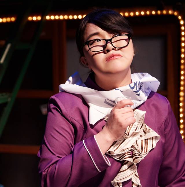 第三是细节好笑。幽默在音乐剧中是个重要元素。但本剧不像《第四者晚宴》、《艳遇十小时》、《闹洞房》这种佳构剧,靠人为制造的种种巧合来制造笑料。它的逗趣之处在于种种细节,比如演员的某个动作、某个表情、某句话,搔到观众痒处,让人会心一笑。这些有趣细节的设计很用心,笑料很密集,能够吸引观众全身心投入。
