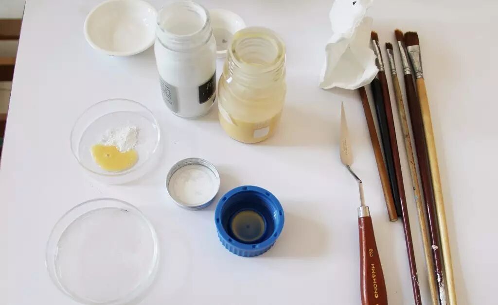 乳溶液作用于油与水之间,坦培拉白很容易被树脂油层吸收,这也是混合技法的技术关键。利用坦培拉画层的半透明与不透明的特点,和透明亲水性好的树脂油画色层反复多层相叠。