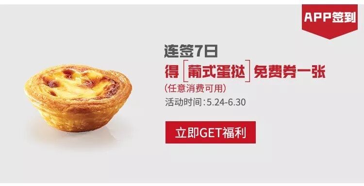 在APP上连续7天签到打卡免费得【葡式蛋挞】