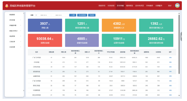 此后,西城区承担全市数字养老助餐、适老化改造、辅具租赁等服务体系建设的试点工作,每项业务均建立了相应的业务和监管系统。2023年起,通过整合基本养老服务、家庭养老床位、养老助餐、巡视关爱、居家适老化改造、辅助器具租赁、异地康养、志愿服务管理八大专业服务平台,形成了全区统一的养老服务与管理综合平台。在此基础上,建设了全区智慧养老大数据平台,形成了老年人口分布、服务资源分布、养老服务开展情况“三本账”及全区养老服务地图。在公众服务端,开发了各类业务小程序,统一接入“西城家园”门户,老年居民可通过身份证、老年卡、手机微信等多种方式实现养老助餐消费和服务预订,并与北京市养老服务平台实现对接,极大地提高了服务的便利性。