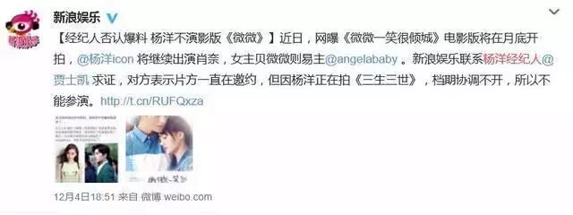 说到这里,就不得不提一下另一个大热IP《微微一笑很倾城》选角的事情,影版确定杨洋之后,剧版一直悬而未决。