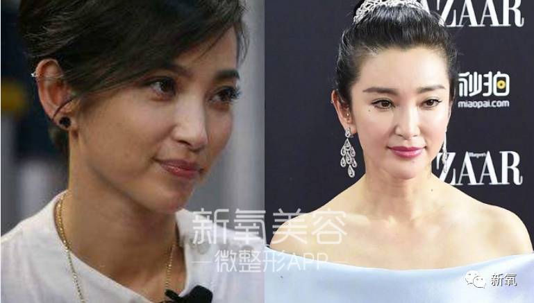 合照更能说明问题,乍一看李冰冰的饱满度更佳,伴有很明显的填充过量痕迹,如果没有这些填充物的支撑,毫无疑问的脸部走向会往下。