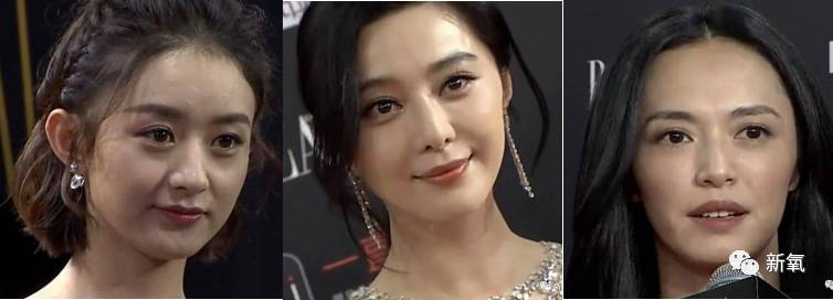 羊又把赵丽颖和同场另外几位没有P图迹象的对比了一下,发现她不仅比范冰冰垮的明显,甚至比大她8岁的姚晨脸部走向还要靠下。