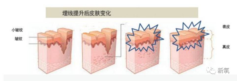 我们常常听说的埋线提升,其实有部分就是这个原理。用蛋白线给皮下造成一定的损伤,然后刺激胶原增生,增加真皮厚度,恢复皮肤的支撑力。