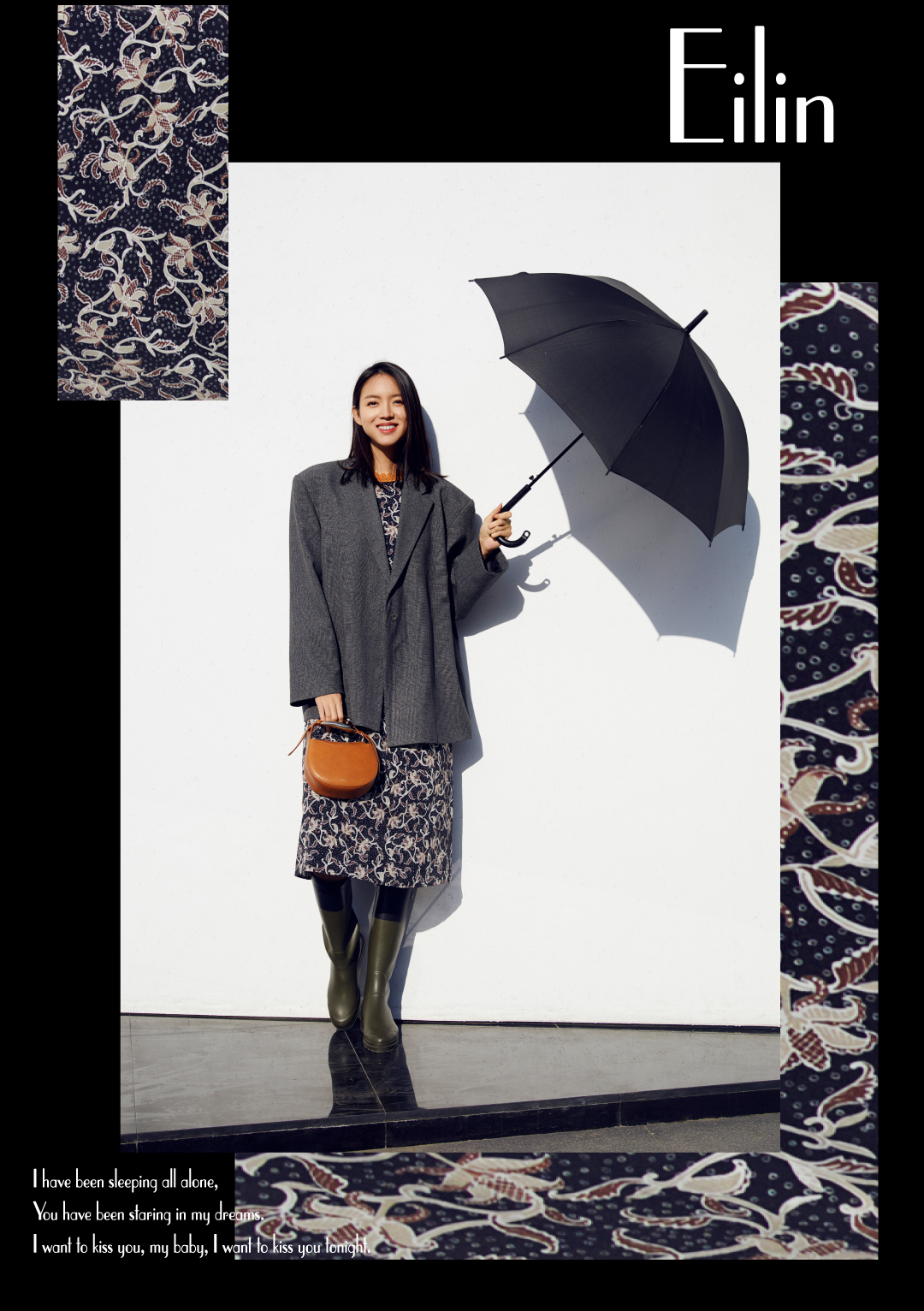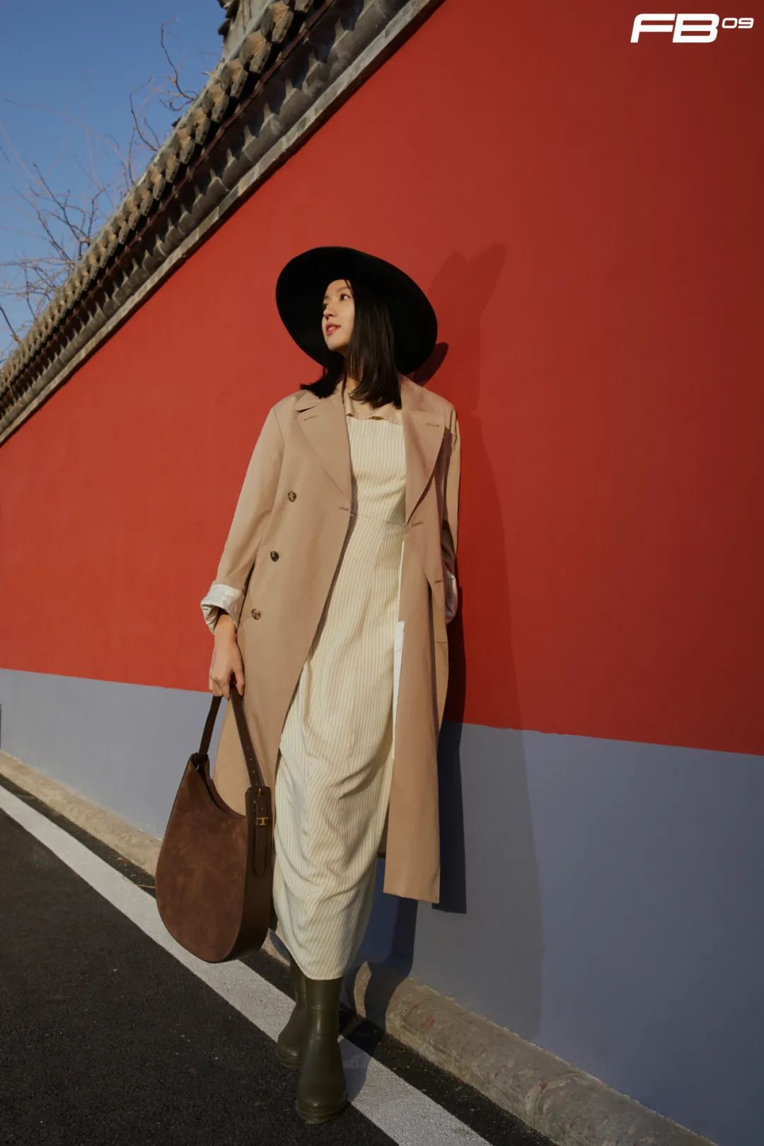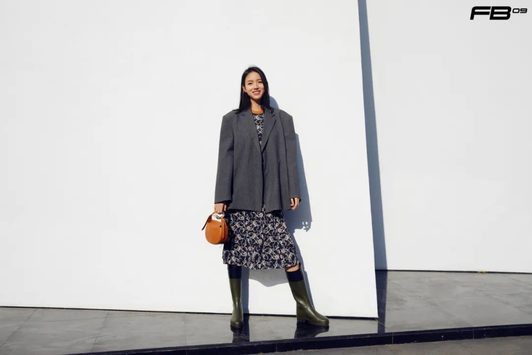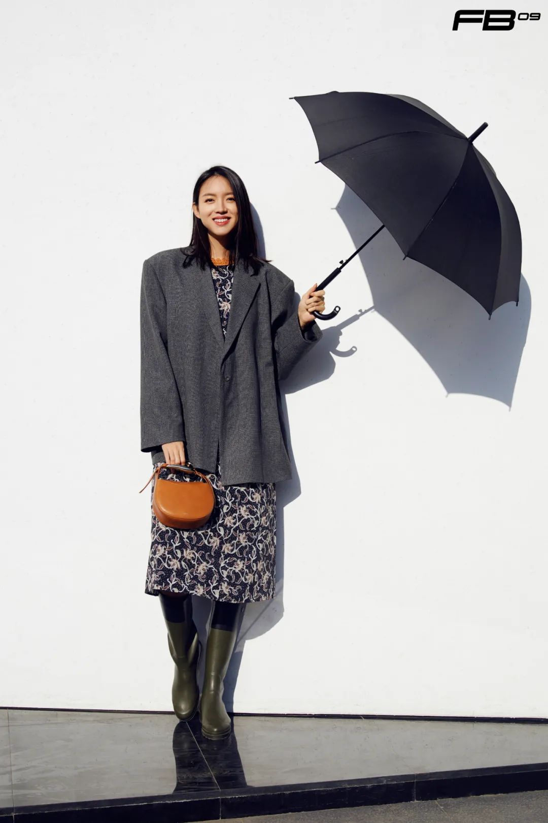 △同时焦糖色衣领和包包颜色完美呼应。再来一双舒服耐穿的雨靴,保暖又时髦。