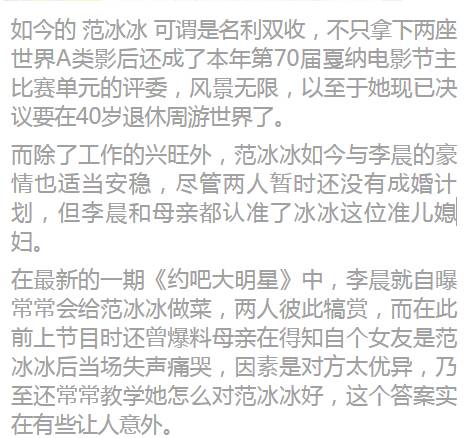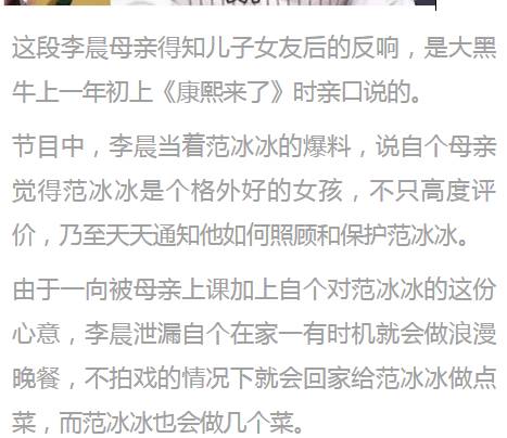 而不只仅是李晨家里人满足范冰冰,范冰冰的爸爸母亲相同很认可大黑牛。