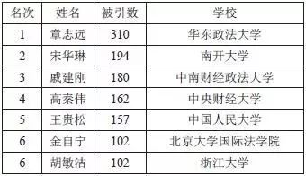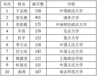 首先需要说明的是,法学各学科由于学科属性、人数规模等因素,对学者的被引次数的多少影响很大。