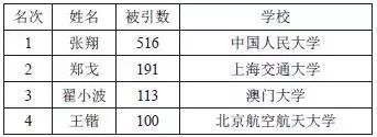 表4 宪法学青年学者被引次数