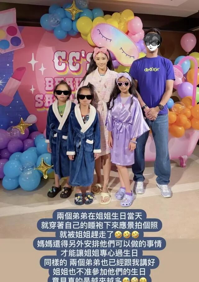有趣的是,这场美容沙龙派对竟然"禁止男士入内"!关颖的两个儿子只能从楼上下来拍照留念,拍完便被姐姐"驱逐"。这个小细节引发网友热议:"女儿在家里的地位这么高吗?"