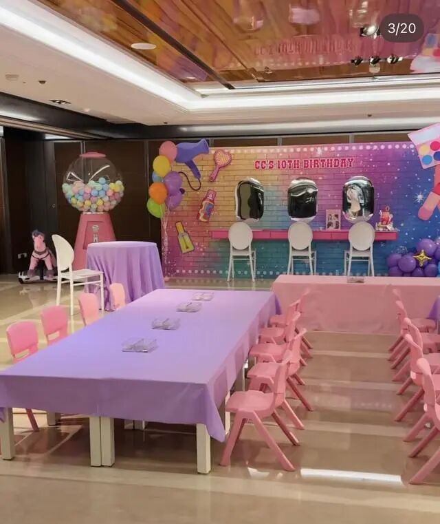 派对现场精心布置,五颜六色的气球、超大生日布景板、卡通浴缸一应俱全。虽然关颖自称"精力有限",只允许女儿邀请15位同学加上这些同学的妈妈们,但派对规模依然堪比小型时尚活动。