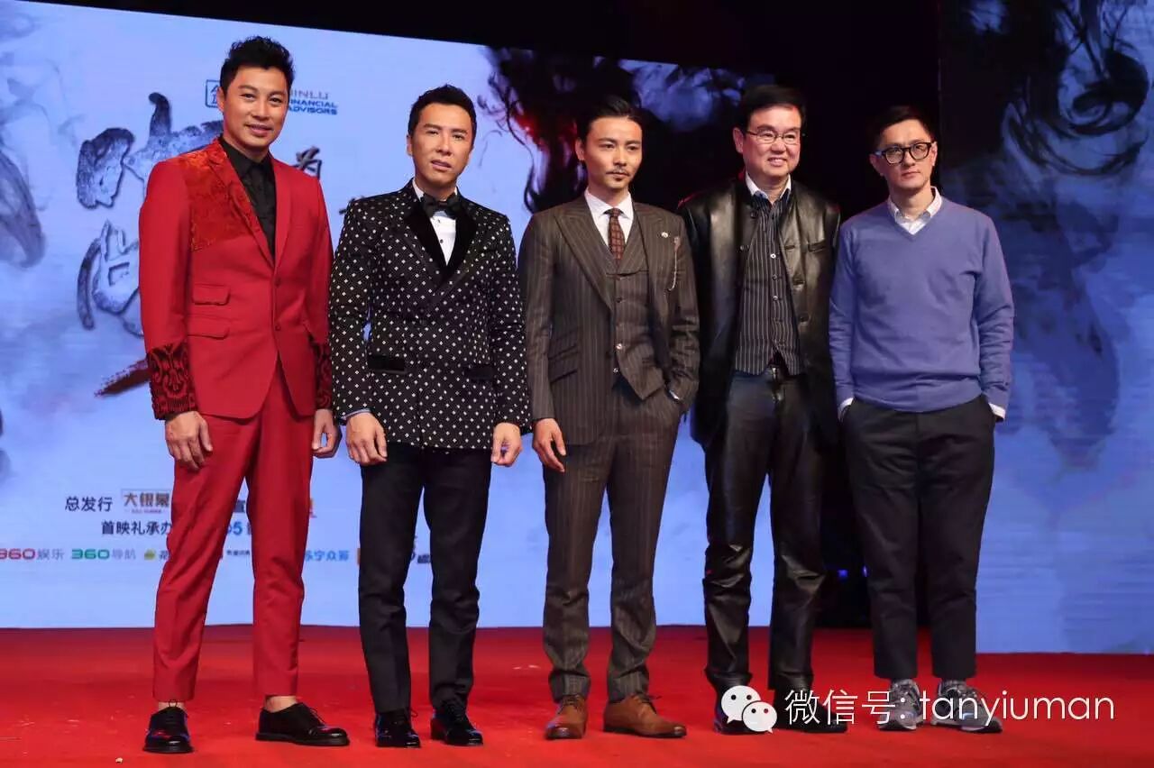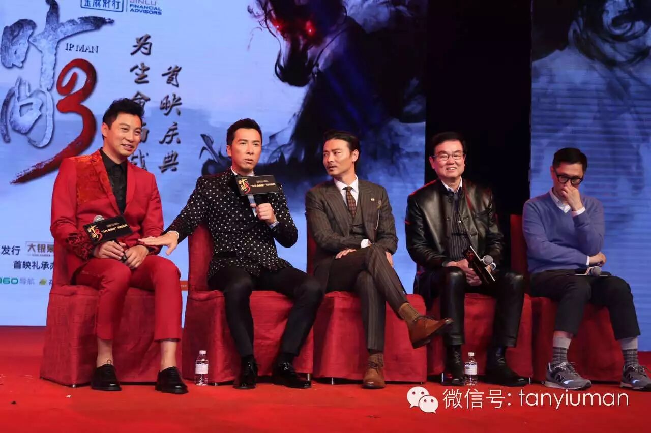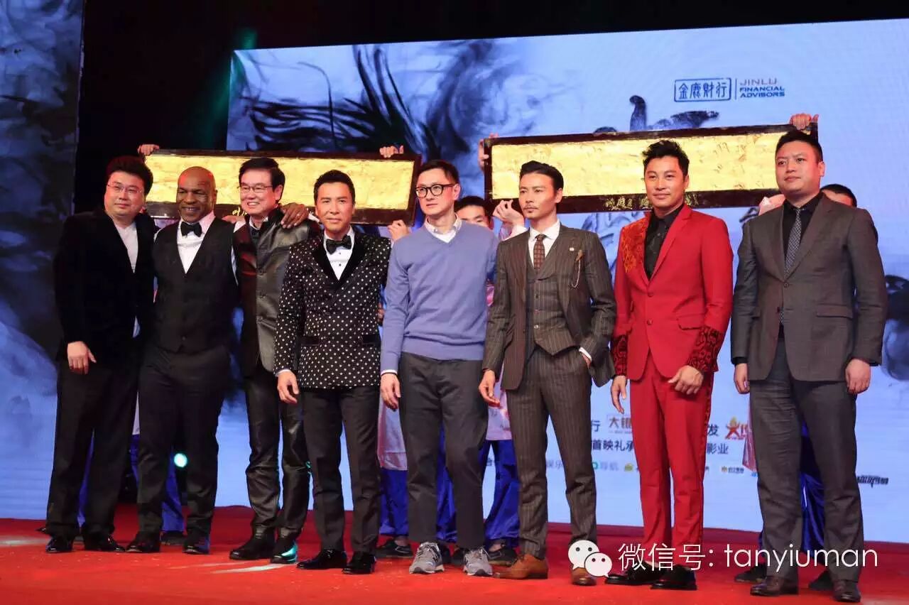 2月28日,3D功夫巨制《叶问3》首映礼在上海举行,监制黄百鸣、导演叶伟信携主演甄子丹、张晋、谭耀文登台,拳王泰森也赶往现场站台。其中谭耀文一席红色西装惊艳亮相,分享电影中的精彩对决。