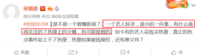 不过,唐嫣宣布怀孕的消息也不全是支持和祝福的声音。在唐嫣宣布怀孕的消息不久,知名导演宋祖德发声,质疑和吐槽唐嫣怀孕的事,称这是一件很小的事,没有什么可关注的。甚至质疑她是用了不正当的手段才上的热搜,但是这样的说法也没有一点根据,真的是让人难以接受。据悉,这位宋祖德是一位导演和作家,曾有多部影视作品。